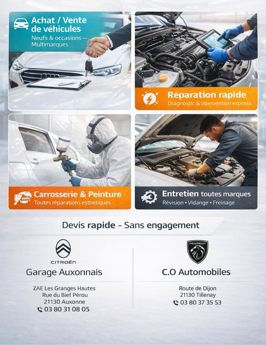 Les garages C.O Automobiles et Garage Auxonnais mettent à votre disposition leurs expertises et leur expérience pour vous offrir les meilleurs services possibles selon vos besoins.